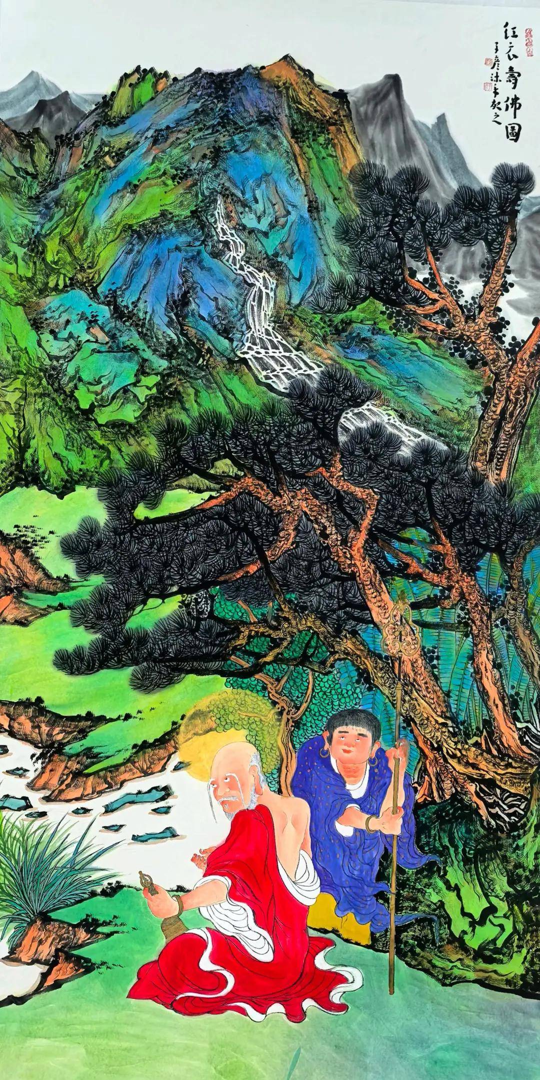 在中国禅画千年发展脉络中,当代艺术家始终面临着“守传统之魂”与“开时代之新”的双重命题。佛学博士、新意象禅画派创始人周晶以其敦煌新彩墨系列、红衣罗汉与水墨佛像作品,给出了极具启示性的答案。这位荣宝斋签约艺术家兼具深厚佛学修为与扎实笔墨功底,在遍访克孜尔、敦煌、麦积山、云冈、龙门等诸多佛教石窟与四大名山的修行体验中,将历代画僧的艺术精髓与当代审美意识相融合,创造出既蕴古意又富时代气象的禅画新图式。 一、敦煌新彩墨:传统壁画基因的当代转化 敦煌壁画作为中国艺术的巅峰之作,其重彩范式与神圣意境一直是后世艺术家汲取养分的宝库,但如何避免沦为简单的复古摹仿,始终是创作难点。周晶以“彩墨调和”的创新手法,实现了敦煌艺术基因的当代视觉转化,被誉为“彩墨敦煌第一人”。他摒弃了传统壁画重彩平涂的固有程式,将水墨的氤氲之气与矿物颜料的厚重质感巧妙融合,在虚实碰撞中重构传统符号的意象边界。 《丝路梵音》作为敦煌新彩墨系列的代表作,清晰展现了这种转化智慧。画面中飞天的飘带并未沿用唐代壁画的浓艳勾勒,而是以淡墨中锋写出流动韵律,却在线条边缘处晕染出朱砂与石青的斑驳痕迹,既有“天衣飞扬,满壁风动”的古典意趣,又因色彩的虚实对比产生现代构成感。这种处理并非对传统的背离——背景中隐约可见的藻井纹样、莲座形制,仍恪守着敦煌艺术的精神血脉,正如周晶在《禅海拾贝》中所言:“敦煌创新当守‘形异神同’之道,笔墨可新,心性不变”。在色彩运用上,他借鉴敦煌壁画“随类赋彩”的传统,却以水墨的干湿浓淡调节色彩饱和度,使石绿与赭石在宣纸上形成自然晕化,既保留了矿物颜料的千年质感,又赋予画面呼吸般的灵动气息。 这种转化背后是周晶对敦煌艺术的系统研究与实地体悟。他沿着佛法东传的脉络,从新疆克孜尔石窟到敦煌莫高窟,逐一采风写生,将壁画中的色彩密码与石窟的空间意境融入创作。在2025年北京个展中展出的40余幅彩墨敦煌作品中,既有八尺巨制展现经变画的宏大叙事,亦有卡纸小品捕捉供养人像的细腻神情。《莫高窟第323窟记》以全景式构图再现石窟形制,崖壁以枯墨皴擦出风化痕迹,洞窟内的佛传故事则以淡彩轻染,形成“外枯中膏”的视觉效果,暗合敦煌艺术“历经千年而神韵不减”的特质。这种创作被学界评价为“填补了中国画在佛窟题材系统创作上的空白”,其价值不仅在于题材开拓,更在于建立了传统壁画与当代水墨的对话通道。 周晶的敦煌新彩墨系列还突破了传统壁画的叙事性局限,强化了禅意的意象表达。《莲心观想》中,他将敦煌壁画常见的莲花座提炼为抽象的色块组合,以浓墨画叶,淡彩点花,背景则以大笔横扫的赭石色暗示沙漠戈壁,画面中心留白处仅以数笔淡墨勾勒半尊佛像,引导观者从具象欣赏进入精神观想。这种处理延续了新安画派“墨淡意雅”的境界,又融入了现代艺术的简约理念,恰如艺术评论家所言:“周晶让敦煌壁画从墙壁上‘走下来’,成为可游可居的禅意意象”。 二、红衣寿佛:色彩符号的精神升华 罗汉题材在禅画史上有着悠久传统,贯休“十六罗汉”的古拙奇崛、赵孟頫罗汉图的简逸空灵,都为后世树立了典范。周晶从小随伯父习画,喜欢画中堂寿仙老人,得到赵朴初先生认可,赵朴初先生建议多绘“寿佛”,并阐释寿佛有二:一是精神上的延续之寿,二是肉体上的健康长寿,二者结合方为“寿佛”。周晶受此启发,以湖南资兴唐代全真和尚(周宗惠)世寿138岁、获多位帝王敕封“寿佛”的事迹为根基,创作了中国式“寿佛”。此红衣寿佛系列在继承传统“形神兼备”理念的基础上,以红色符号的突破性运用,赋予这一经典题材新的精神内涵,在雁栖湖APEC国际联展中与范曾、崔如琢等名家作品同场展出时,以强烈的视觉张力脱颖而出,尽显“以色传神”的艺术魅力。 红色在传统佛画中多作为点缀色使用,象征庄严与吉祥,而周晶大胆将其提升为画面的绝对主角,实现了色彩从装饰元素到精神符号的升华。《寿佛坐忘图》中,寿佛的袈裟以厚重的朱砂层层积染,笔触间刻意保留的飞白痕迹形成自然纹理,边缘处微微泛出赭石的暖调,与背景的淡墨山水形成强烈视觉对比。这种红色选择兼具文化深意与艺术考量:朱砂作为传统矿物颜料,其千年不褪的特性与水墨的易逝形成时间维度的对话,暗合“生死一如”的禅学命题;而红色的热烈与禅画的空灵形成的张力,则打破了传统佛画过于沉静的审美定式,更契合当代观众的视觉期待。 在造型处理上,周晶延续了“简笔传神”的禅画传统,却融入了现代人物画的造型意识。寿佛身形仅以寥寥数笔勾勒轮廓,面部神情隐于墨色浓淡之间,却通过微蹙的眉宇与轻拈的手指传递出悲悯与威严并存的气质。这种“得意忘形”的表达,恰是对禅画“不立一相,不舍一相”理念的当代诠释。值得注意的是,其寿佛造像中可见新安画派弘仁、金农的用笔影响,线条稚拙而肯定,兼具书写性与造型感,这与其多年的章草功底密不可分——书法线条的节奏变化为寿佛的衣纹处理注入了灵动气息,使厚重的红色袈裟不显凝滞。 周晶的寿佛系列还注重情境营造与精神表达的统一。《禅林说法》以通景构图展现十八罗汉聚会场景,前景寿佛以浓墨重彩刻画,后景则以淡彩水墨晕染,形成虚实层次。画面