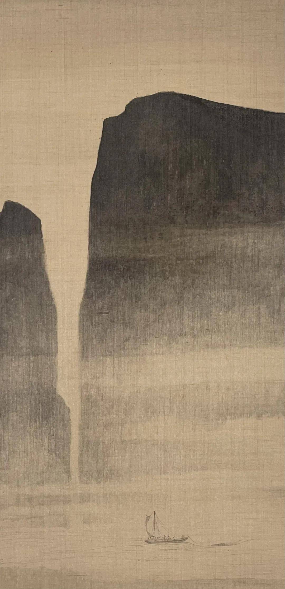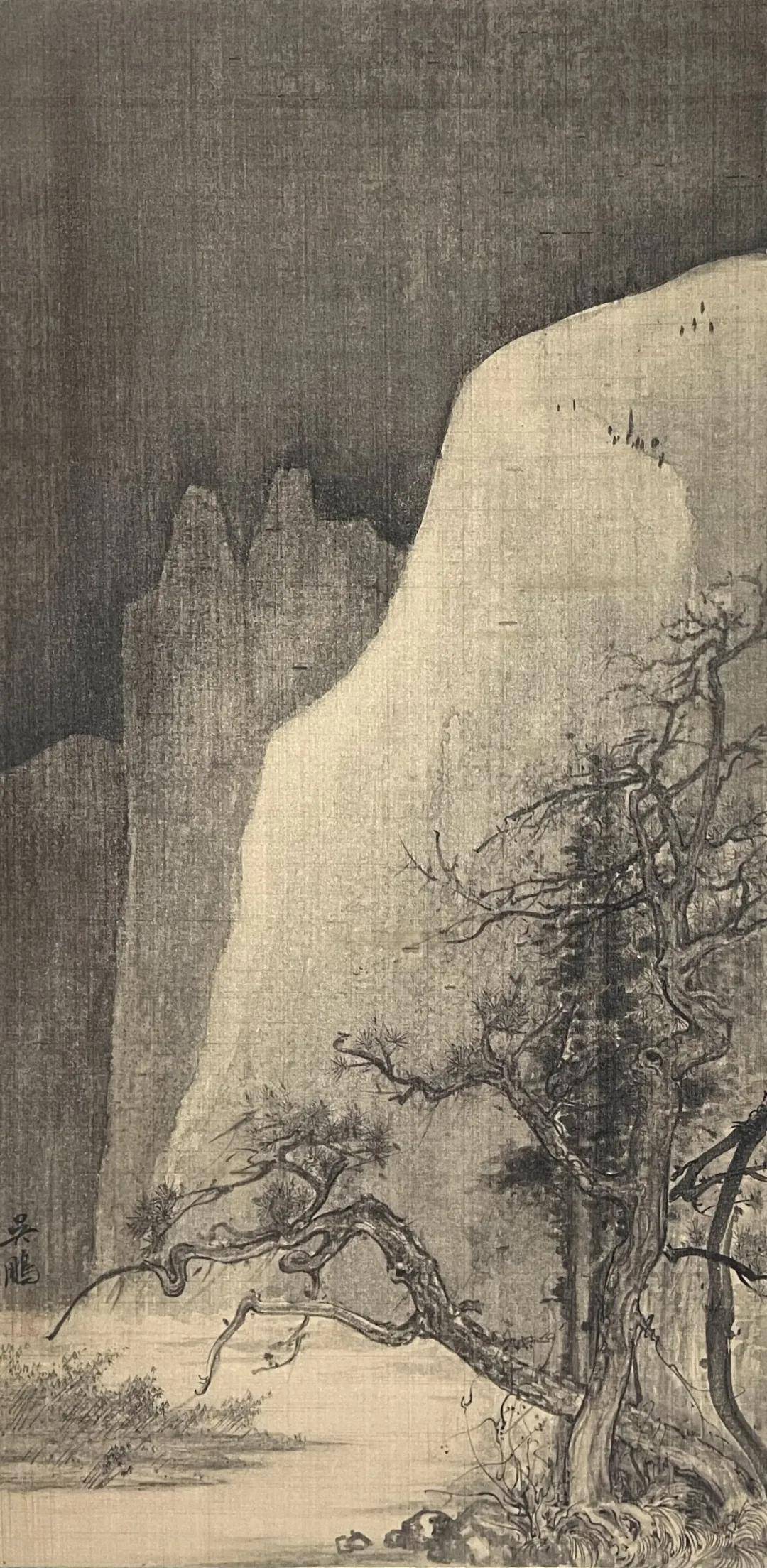 吴鹏《虬枝盘云》 中国画 2025年 古人云“文以载道,画以传情”,吴鹏正是借树木的形象,将陕西人“质朴坚韧、刚正不阿”的品格融入画里。观者见其树,便如见其人,在欣赏笔墨清秀的同时,更能感受到一种精神的感召——那是对坚韧品格的推崇,对君子之风的向往。 三、跨:破界跃升,成就艺术新境 吴鹏的艺术之路,始于灵性的花鸟画创作。他早年专攻花鸟,笔下的花草清爽、雏鸟灵动,尽显“穷理尽性”的笔墨功力。但他并未止步于“一花一鸟”的小情小趣,而是循着“外师造化,中得心源”的画理,将目光投向更广阔的山水世界,完成了从花鸟画到山水画的重要跨越,其跨越后的山水作品中,更暗藏“宋画”的笔墨意趣——无论是山石的质感刻画,还是空间意境的营造,都可见宋画“格物致知”的严谨与“气象雄浑”的韵味。