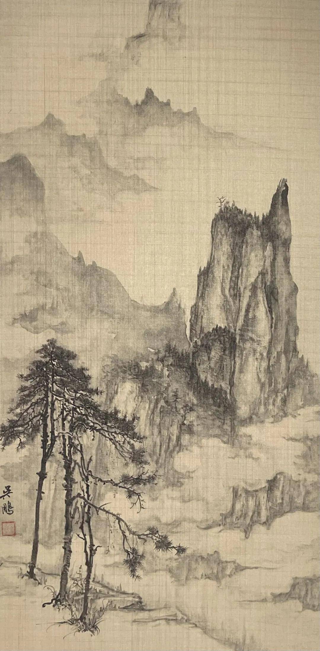 吴鹏,号天塵,生于陕西省汉中市城固县,师从中国著名书画家范治斌先生。擅长以灵动线条与水墨交融表现自然生趣,作品融合传统技法与现代趣味,代表作品有《村口侦察队》《四面楚歌》《一鼓作气》等。其国画花鸟主张“真趣”,打破传统花鸟缺乏生机之弊,强调观察自然与生活细节,作品深受年轻群体喜爱。 吴鹏自幼酷爱书画艺术,而立之年便嗜学不已,立志穷究翰墨之林。数十年来,他潜心笃志,无间冬夏,获益匪浅。他师古人、师造化、师心源,喜欢游走于山水自然间,徘徊于花草之中,追求笔墨气韵灵动,落笔之处皆成妙趣之境。 圈内文艺评论家曾这样评价吴鹏:吴鹏笔墨线条灵动飘逸,于宣纸之上勾勒出一片清新脱俗的艺术天地。那线条恰似轻柔的清风,悠然拂过纸面,带着灵动的韵律,每一笔都仿佛在纸间跳跃、舞动。画中的动植物仿若有了生命,观者极易沉浸于他所创造的奇妙世界。 《山水为卷,树为魂——陕西吴鹏山水画赏评》 文/郑梧沐 中国山水画自古便承载着“天人合一”的哲思,陕西画家吴鹏以水墨为桥,通过写生观照万景万物,将对祖国大好河山的眷恋与个人对崇高精神品格的追求,凝于宣纸绢本尺幅之间。他以“画中山水”铺展天地壮阔,以“岩上树木”寄托人格风骨,更借由花鸟画向山水画的跨越,完成了个人艺术境界的跃升。作为与他深交多年的朋友,见证其近期跨越式的艺术成就,我心中充满激动与欣赏。 一、山:墨绘山河,尽是大景大观 “山,经也;海,纬也,天地之所以经纬万物者也。”吴鹏画山,从不拘泥于一隅之景,而是以“囊括万殊,裁成一相”的气度,勾勒祖国大好山河的雄浑气象。他笔下的群峰,有着别样的神韵与风貌:有的主峰巍峨矗立,远山逶迤相伴,云雾缭绕其间,近景处溪涧潺潺、草木点缀,巧妙营造出“高远”“深远”“平远”的三重空间意境,尽显如杜甫所云“会当凌绝顶,一览众山小”的壮阔之感;有的山峦则如“峨峨高岩蔽,皎皎明月舒”描绘的一般,或似利剑直插云霄,或像巨兽盘踞大地,在水墨的晕染下,层次分明,气象万千。