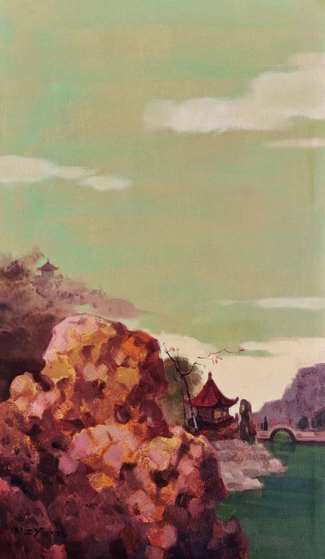 严子宇《画里苏杭 鸣琴而治》 50cm x 86cm 油画