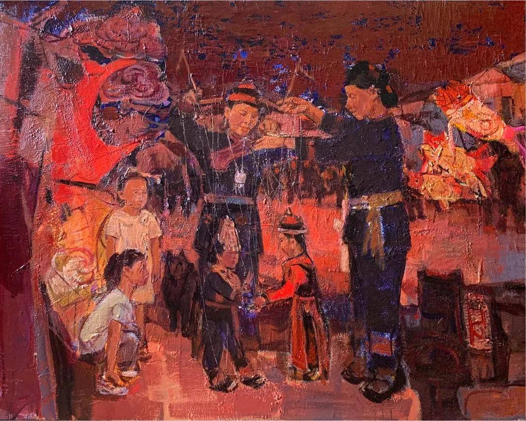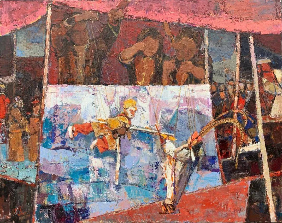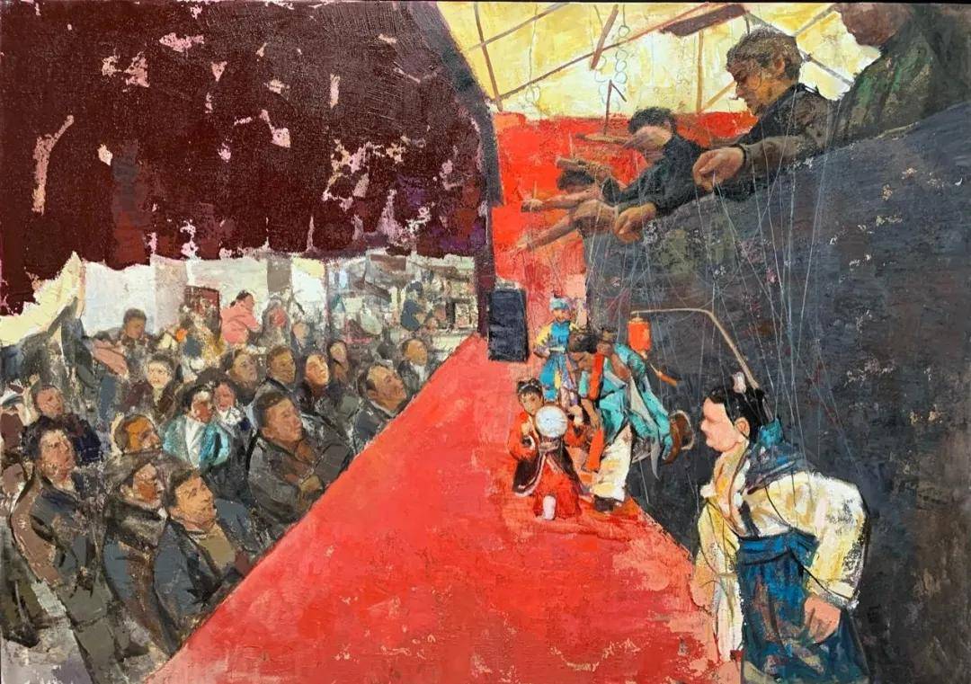 卓朝晖《汉唐遗韵-提线木偶戏四》 120cmx150cm 油画 2021年