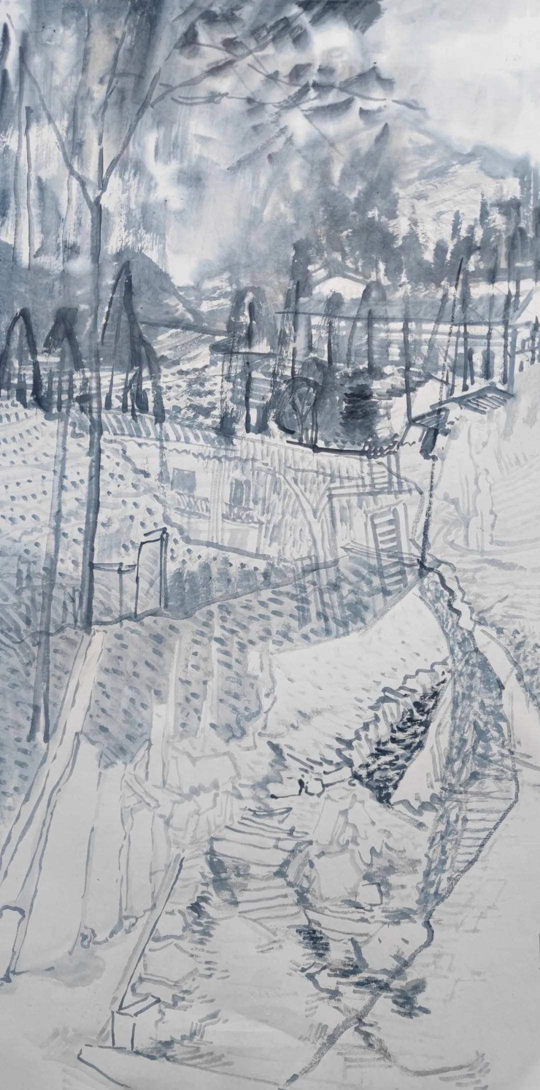 曾国防写意画《乐屿大意》 45cmx66cm 2025年 这种融入矿物研磨、层层叠染的“慢”,是对手工价值的坚守,是对瞬时消费式审美的抵抗,让每一幅作品都沉淀了时间的厚度、手作的温度,以及创作者与八闽大地的精神联结。 艺术创作是一场与历史、与自我的漫长对话。曾国防在与矿物颗粒的朝夕相处中,行走在八闽乡土的写生路上,沉思考量从具象到抽象的表达,他完成的不仅是艺术技巧的锤炼,更是精神的沉淀与生命的升华。于他而言,艺术早已超越职业范畴,成为安顿自我、对话世界的生存方式。