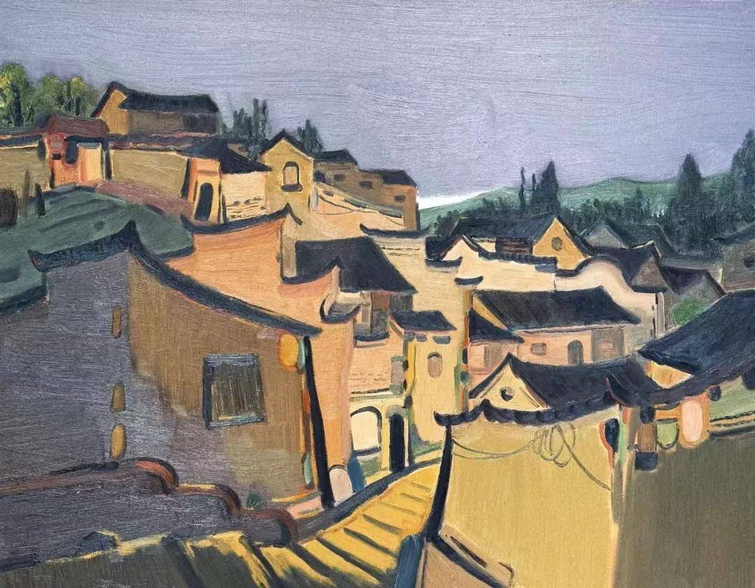 当下艺术圈,写生早已超越技法训练的原始功能,成为艺术家与地域精神对话、重构个人创作语言的重要路径。江苏青年艺术家陈允光的陕北麻黄梁与福建屏南写生系列,正是这样一次跨越南北的视觉行走与精神探索。 当黄土高原的苍茫邂逅闽东古村的厚重,当“无地平线”的黄塬旷野对话“屋顶线交织”的闽东古巷,陈允光用画笔完成了一场关于色彩、时间与空间的多维叙事,也让我们看到青年艺术家如何在现场写生中突破书本认知的桎梏,为写生赋予鲜活的精神温度。 上篇:陕北麻黄梁 一、黄塬旷野:暖调色彩里的苍茫精神 麻黄梁的正午,阳光如熔金般泼洒在连绵的土塬上,将千沟万壑染成一片流动的、斑驳的暖色调。这种视觉体验,陈允光形容为一种“令人恍惚的震撼”,它彻底颠覆了书本上关于黄土高原“单调土黄”的刻板印象。陈允光敏锐捕捉到麻黄梁的“金芒”质感——那不是单一的黄色,而是在烈日照射下,由土黄、赭石、熟褐乃至阴影处的冷紫交织而成的复杂色调。他以大胆的色块并置和微妙的色调过渡,将这种“阳光的质感”转化为画面语言。这种处理方式,暗合了印象派对于“外光”的追求,却又超越了其对于瞬间光色的迷恋,转向对一种恒定地域精神的提炼与凝萃。