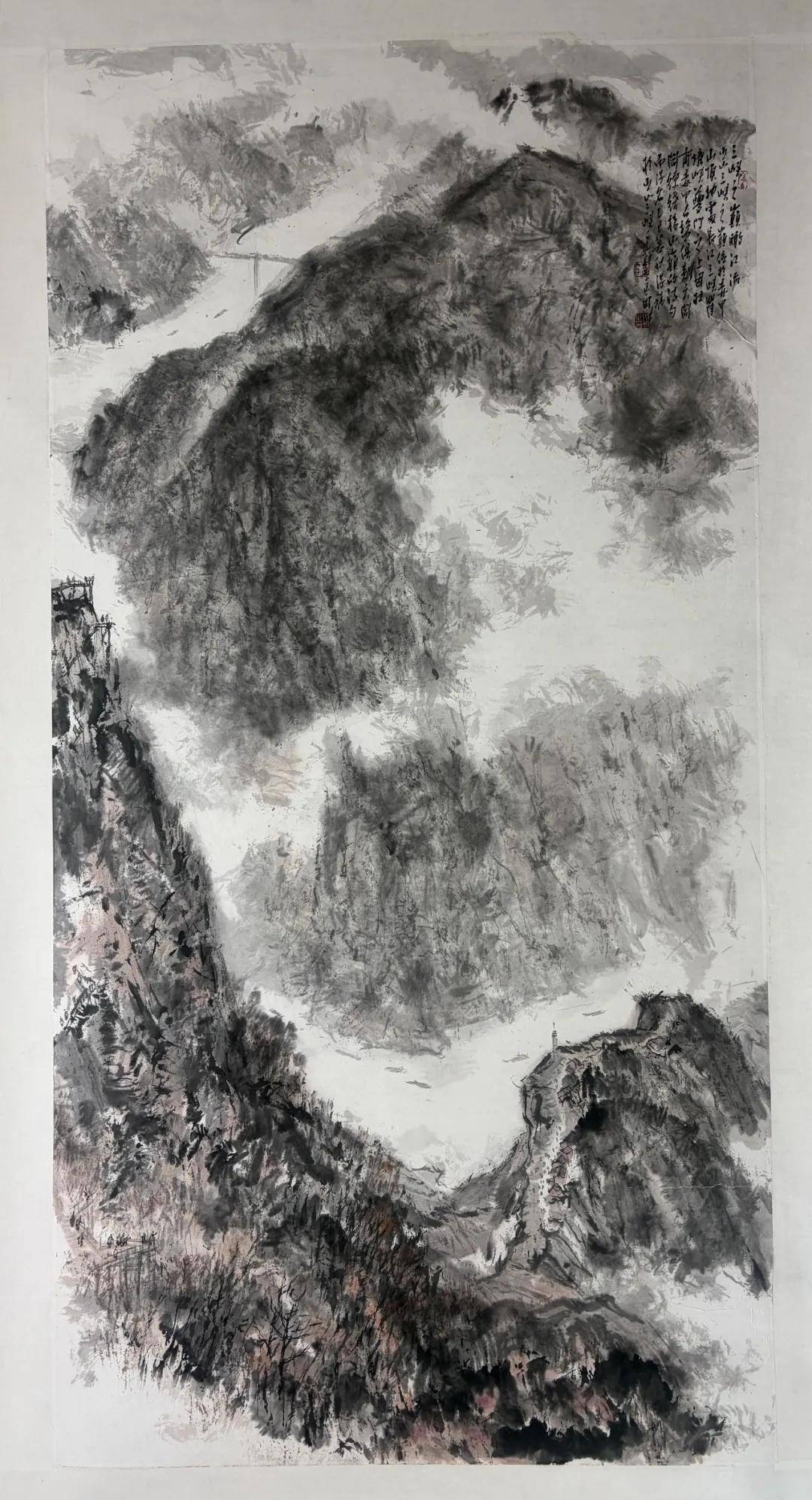 周波《三峡之巅瞰江流》 138cm x 69cm 中国画 2025年